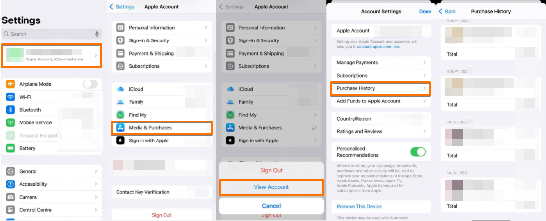 Für Apple-Käufe gehst du zu Medien & Käufe —- Account anzeigen — Kaufverlauf.